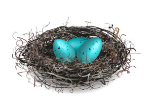 For several days, as I turned the doorknob to leave, I’d hear the familiar rustle of wings as the mama bird flew from her nest. I’d exit quietly and glance at the nest, admiring how cozy she’d made it. Then one day, when I peeked inside, I saw three tiny blue eggs. I felt as proud as a foster mama bird could be. We were expecting!