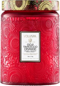 These Voluspa candles come in beautiful jars with lids that look great wherever you put them. Plus, you could definitely save once the candle wax is gone. But the best part about them is that the scents are SO nice, and the candle burns evenly (as long as you trim the wick each time before you light it). The scent fills a large room, and the candle really does last a long time. I used the scent Goji Tarocco Orange during Christmas and then started one called White Cypress for January. Next I’m going to try Baltic Amber, which is one of their bestsellers. You can buy these candles at a few local gift shops or online at the Voluspa website or on Amazon.
